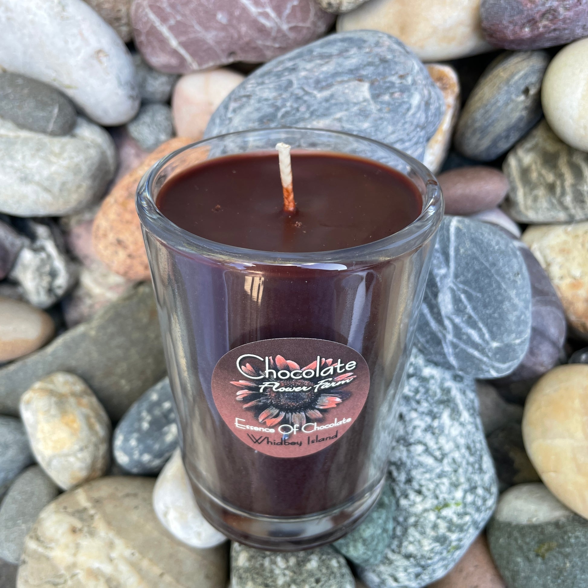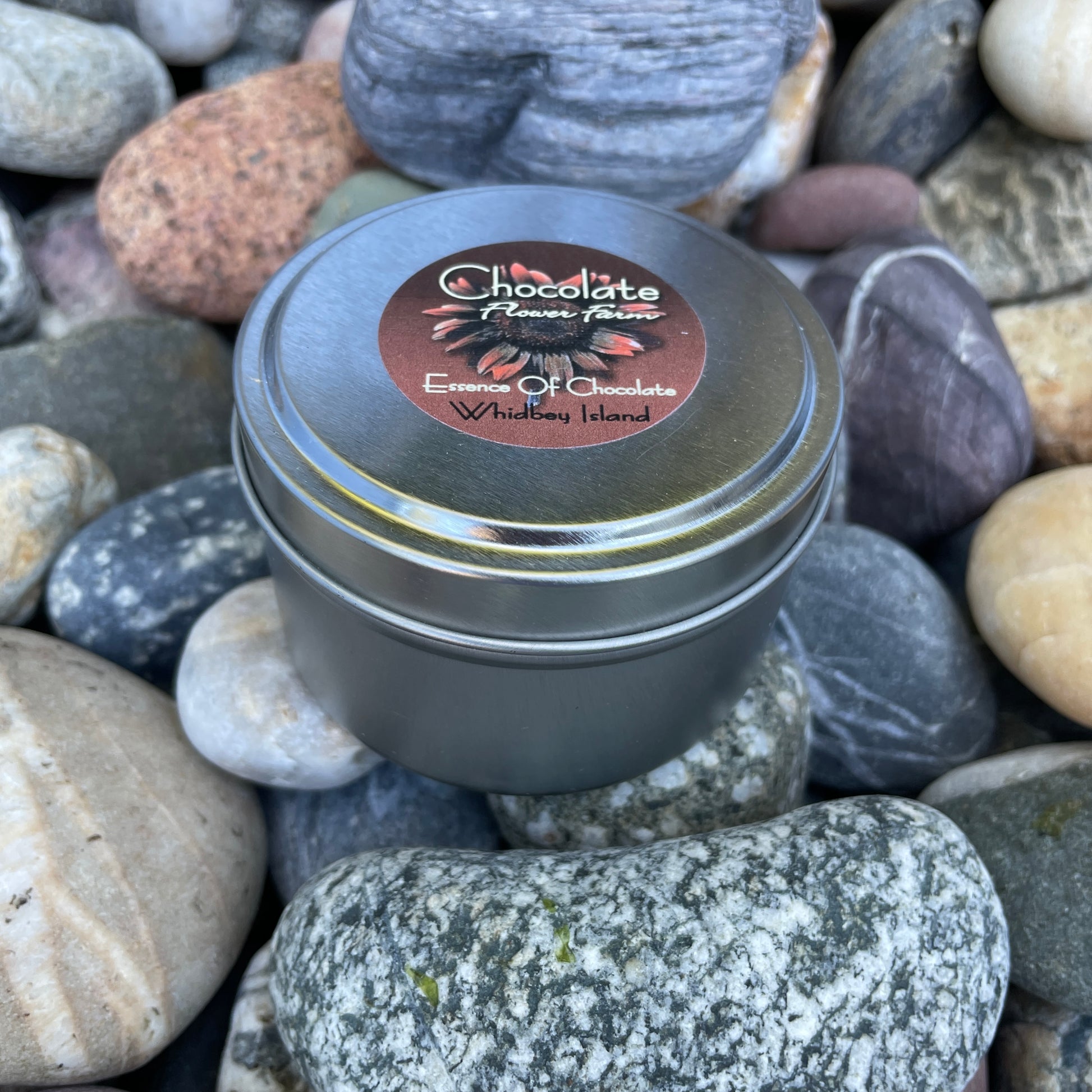 Just smelling this candle is like eating dessert! This chocolate candle is handmade on Whidbey Island with a soy blend wax and natural scents.