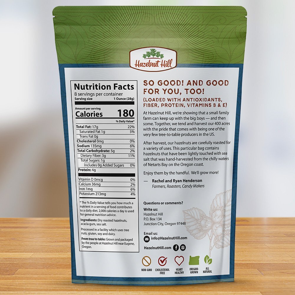 Delicious hazelnuts grown in Oregon and roasted slowly in small batches for an extra pop of crunch. These nuts are pure and free of anything besides the tasty bits of skin that remain -- delivering an extra boost of antioxidants -- and a bit of salt! Enjoy them on their own, mix them up for a trail snack, or fold them into a baked treat.