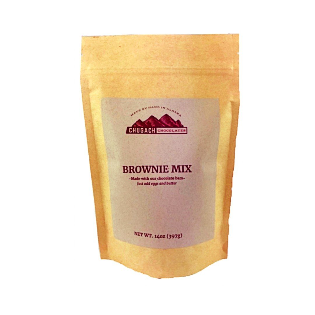 Fudgy brownies whenever you want them! Mix made with sea salt from Prince William Sound in Alaska with actual tiny chunks of Chugach's Dark Chocolate Sea Salt bar and lots of cocoa butter. Just add eggs and butter!
