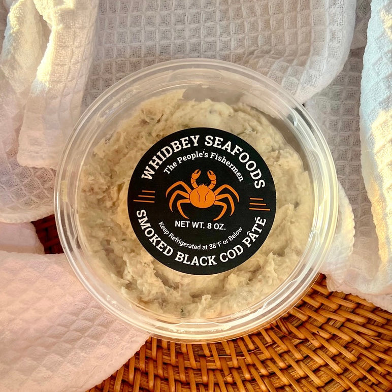 Smoked Black Cod Paté made with wild-caught trolling caught and flash-frozen at sea from the F/V Barnaof in the Bering Sea, Alaska. The cod is smoked at Seabolt’s Smokehouse on northern Whidbey Island, and blended with cream cheese, mayonnaise, lemon juice, and herbs and spices. 32 grams of protein per container and no preservatives! Delicious on crackers, vegetables, pasta, sandwiches, or just eaten with a spoon.