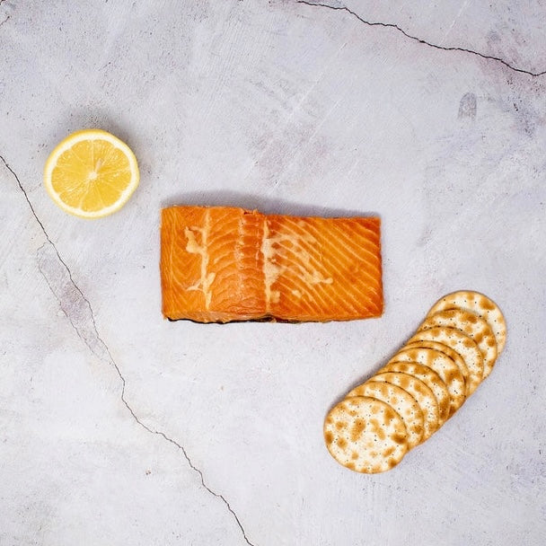 Wild-caught King Salmon sustainably troll-caught and flash-frozen at sea in Southeast Alaska. The salmon is hot-smoked over alder wood at Seabolt’s Smokehouse on northern Whidbey Island. Made with no preservatives. Rich in Omega-3s and protein - about 21 grams in 6 oz! Pin bones are removed for easy eating. Delicious on crackers, vegetables, pasta, sandwiches, or just eaten by itself.