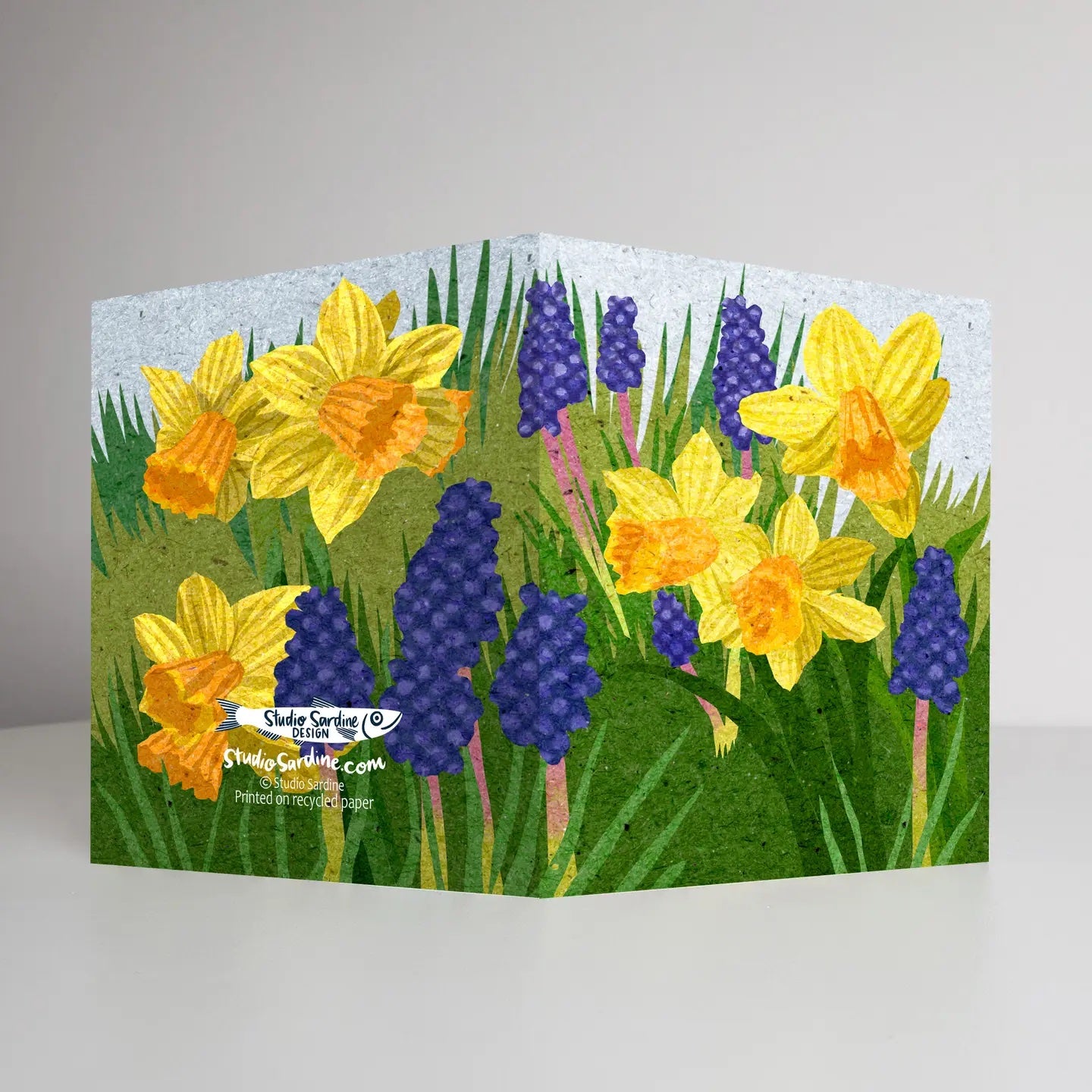 Professionally printed on 100% recycled, 130lb cardstock (envelopes are recycled content as well). Blank inside, so they may be used for a multitude of occasions. Design continues along the back for extra charm. Envelope included.