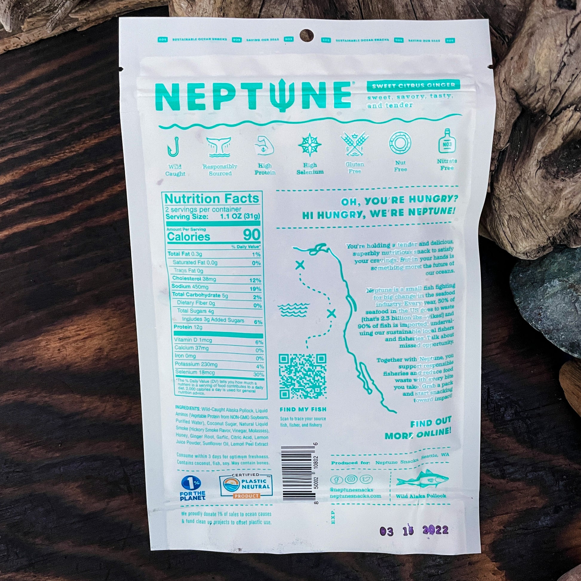 Wild-caught Pacific Pollock dried to perfection and flavored with zesty lemon, rich honey, and refreshing ginger. The perfect sweet and savory anytime jerky!