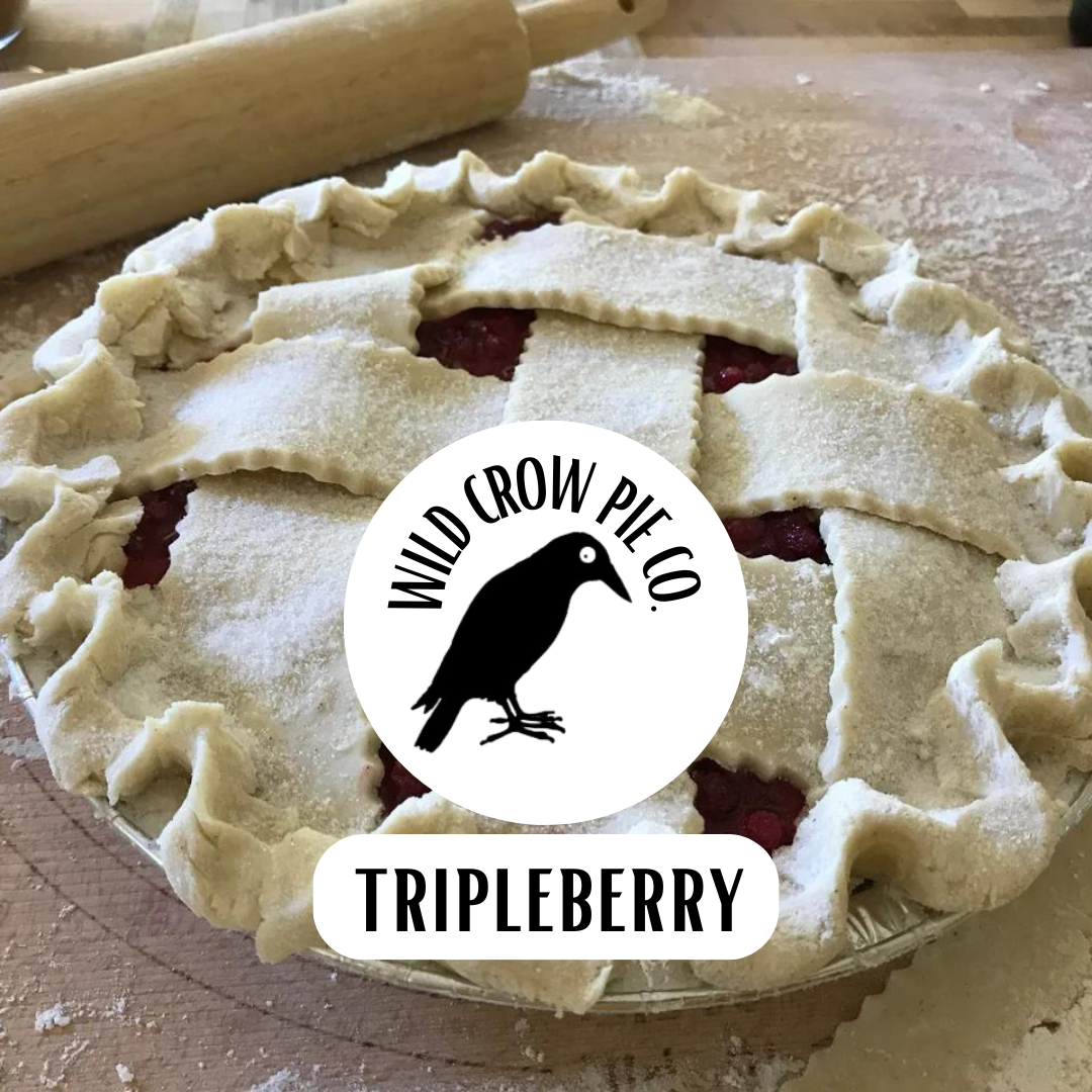 Strawberries, Blueberries, and Blackberries pie. Every pie by hand on Whidbey Island with locally grown organic ingredients from Wild Crow Pie's own Whidbey Island and Skagit Valley farms. No artificial flavors or preservatives and no hydrogenated oils. Just high quality, organic flour, butter, sugar, spice, sea salt and fabulous fruit!