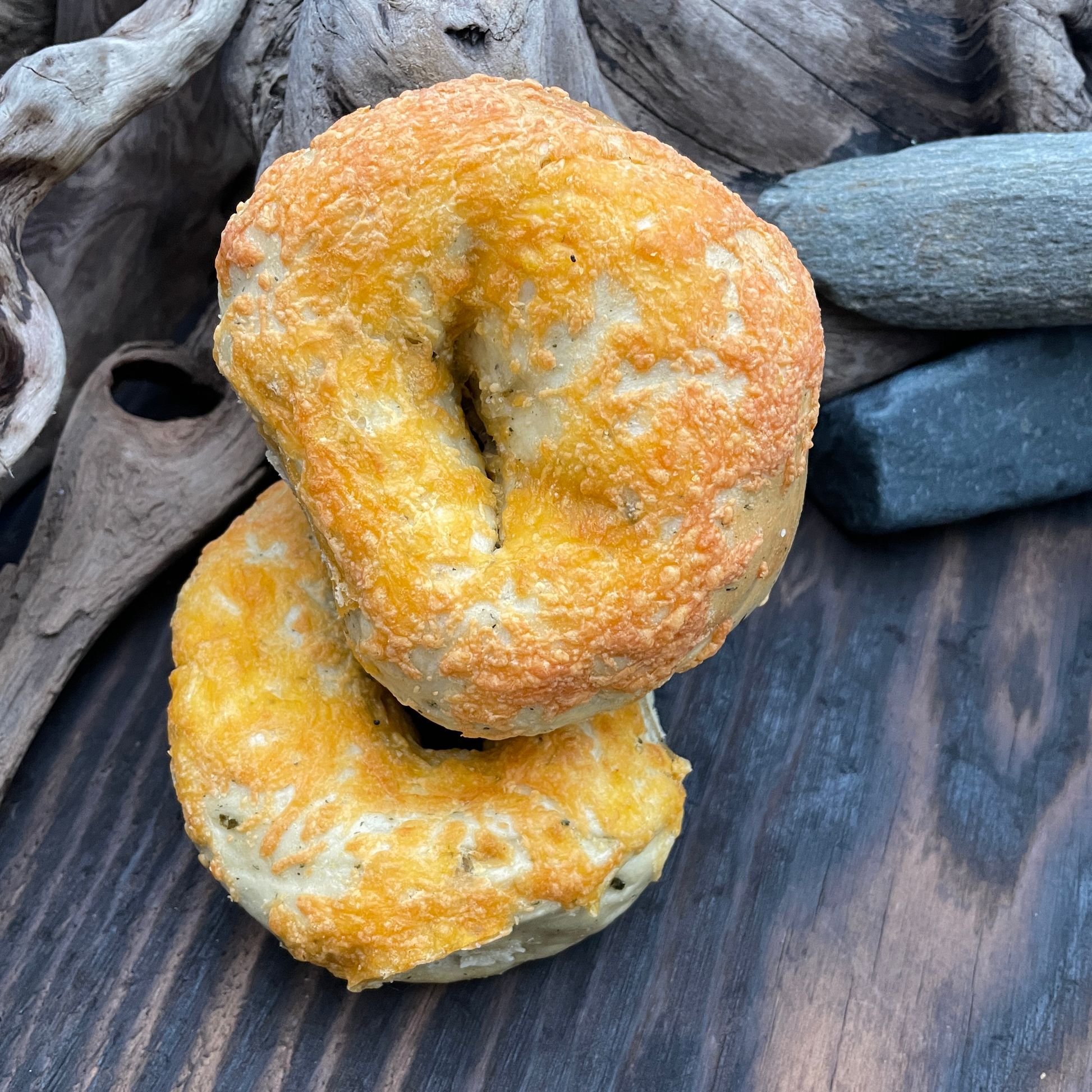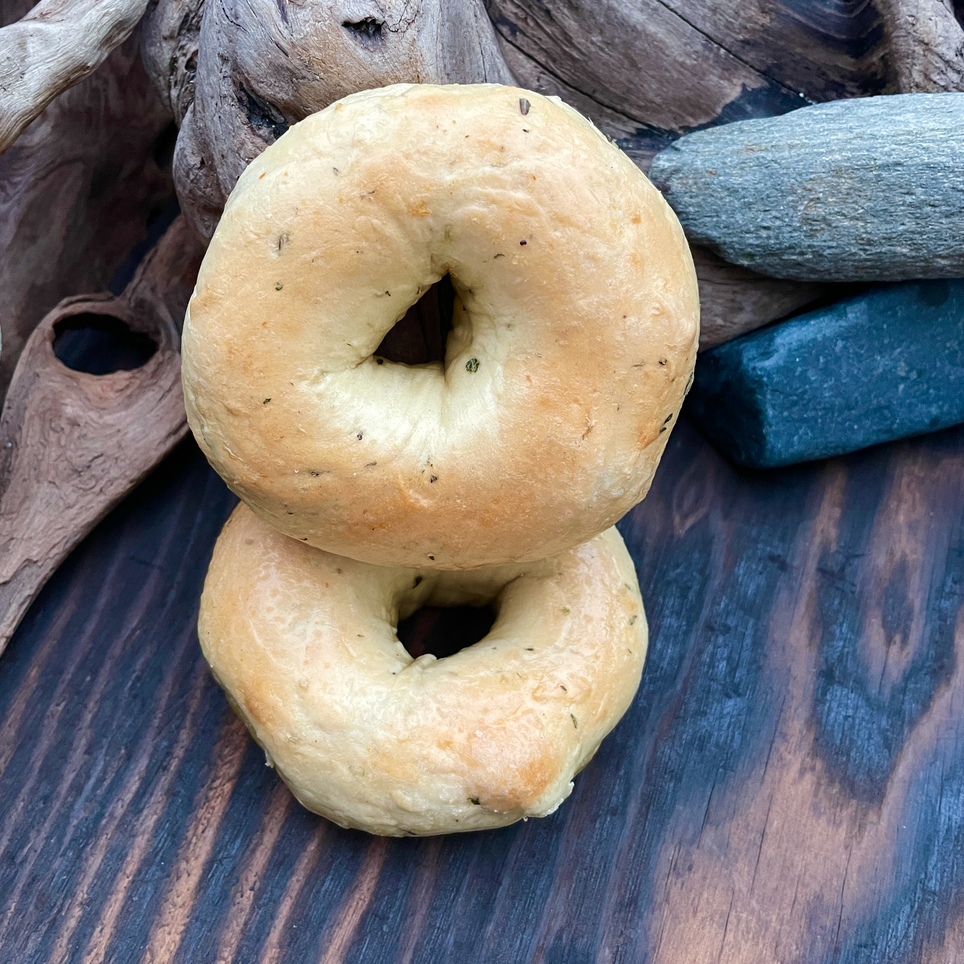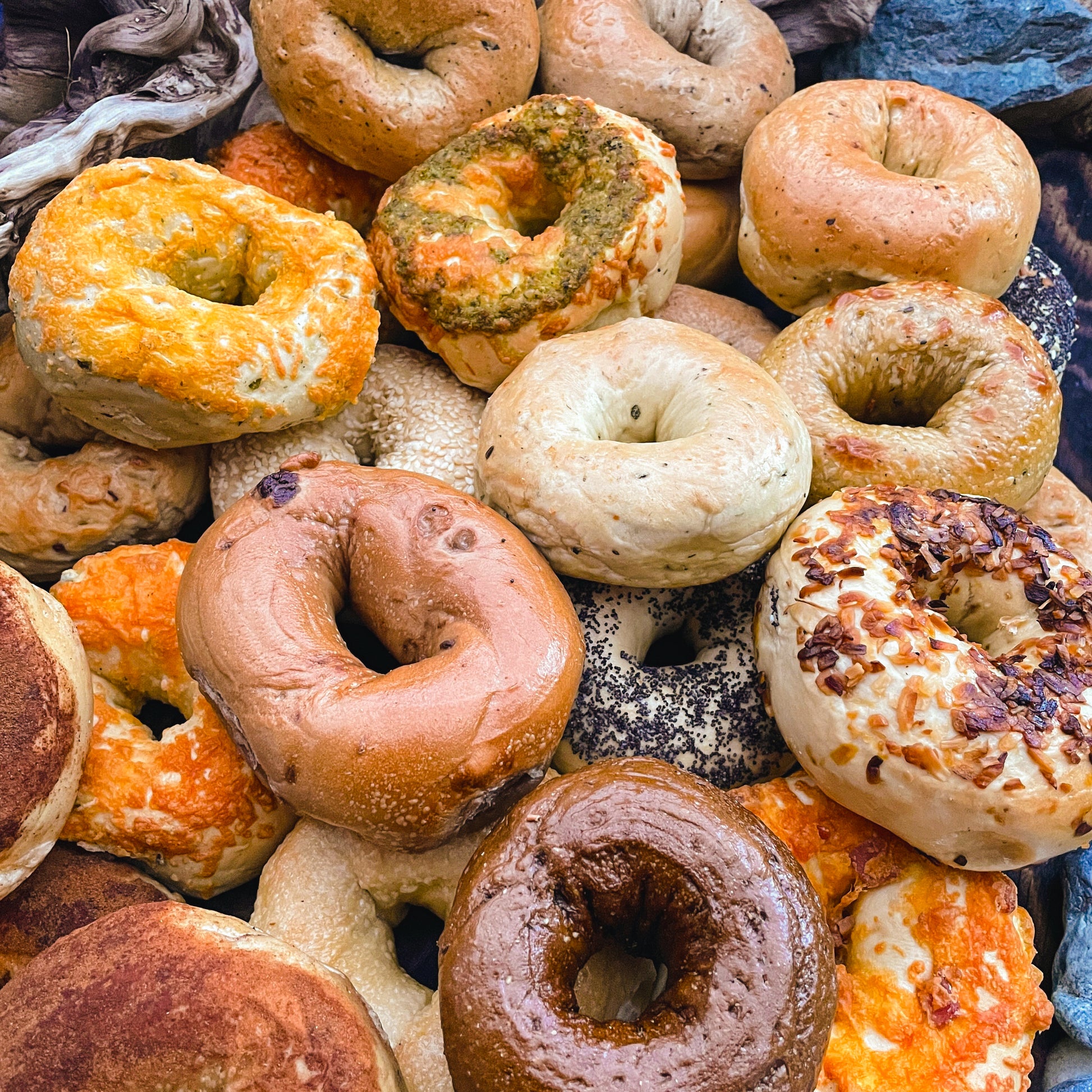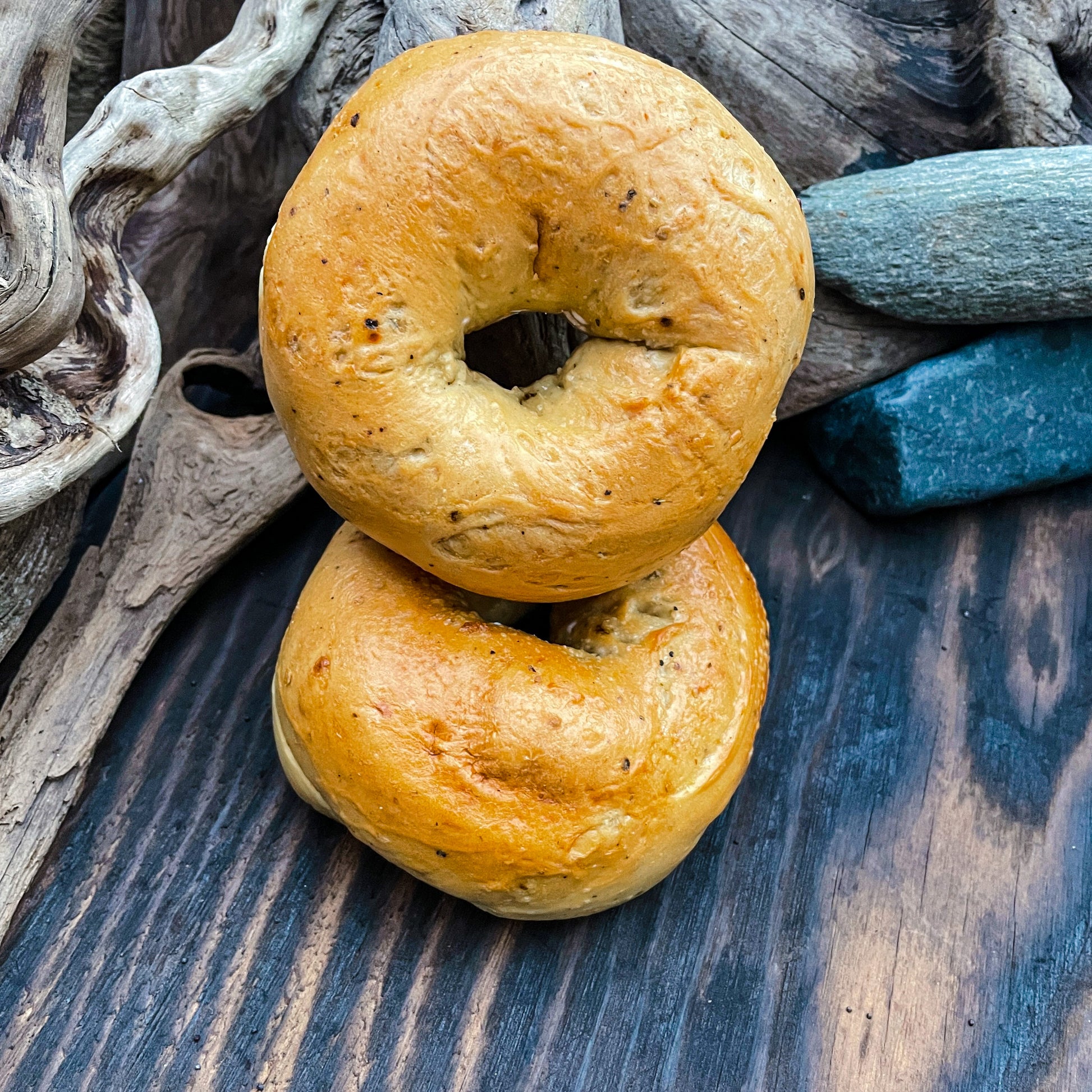 Ingredients: Trade secret. Contact us with specific concerns! Contains gluten. Egg-free. Some flavors contain dairy (anything with Parmesan or Cheese in the title). Vegan Bagel Options Here