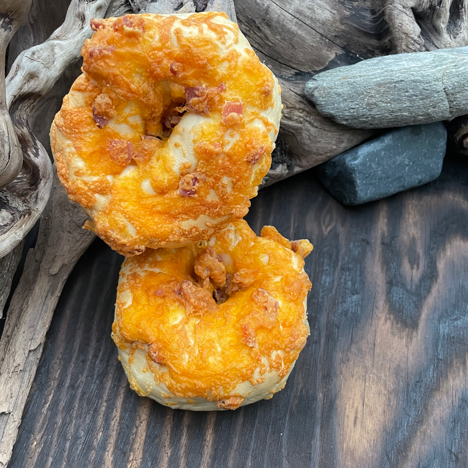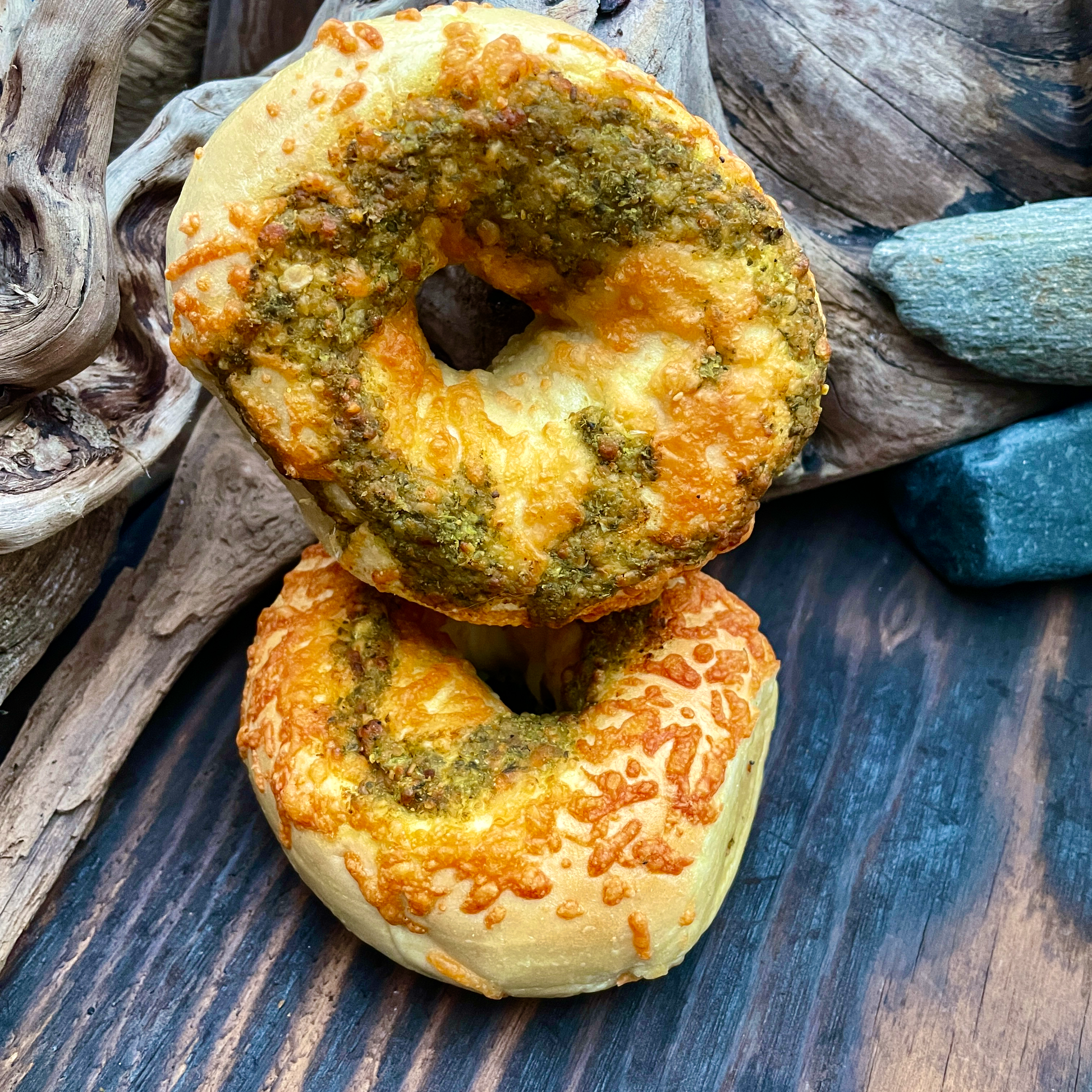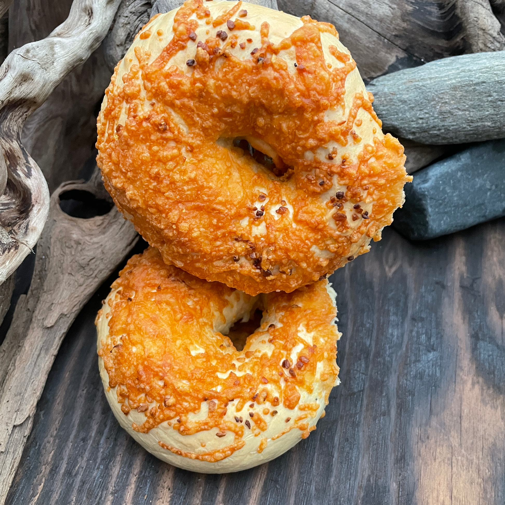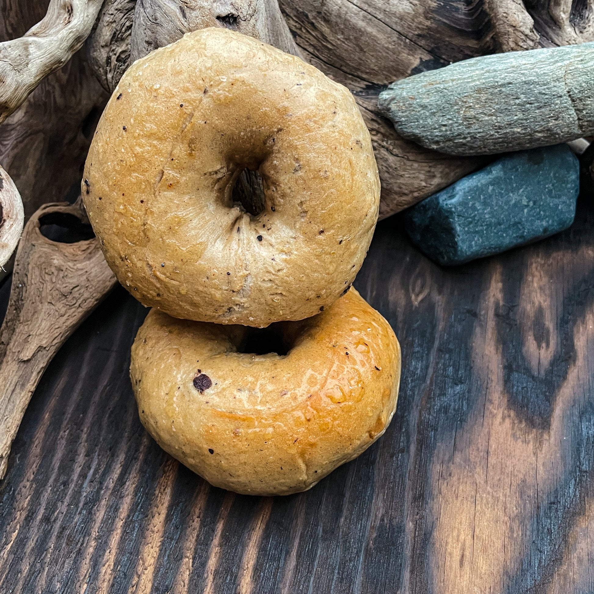 Ingredients: Trade secret. Contact us with specific concerns! Contains gluten. Egg-free. Some flavors contain dairy (anything with Parmesan or Cheese in the title). Vegan Bagel Options Here